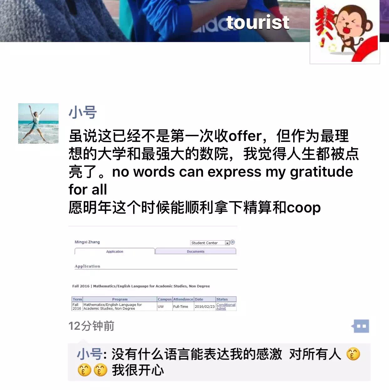 在申請過程中,學生在滑大的另一個專業(yè)還被拒錄了,讓我們小小的擔心了一下,經過與學校溝通,確認不會影響到學生數(shù)學系錄取,我們的心才算放下來。 今年2月,就在學生18歲生日的前一天, 學生收到了最好的成人禮物-滑鐵盧大學的Offer 和3000加幣入學獎學金, 終于夢想成真是學生也是我們最幸福的時刻!
