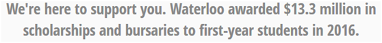 2016年,滑鐵盧大學(xué)授予大學(xué)一年級學(xué)生共計(jì)13,300,000加幣獎(jiǎng)學(xué)金及助學(xué)金。