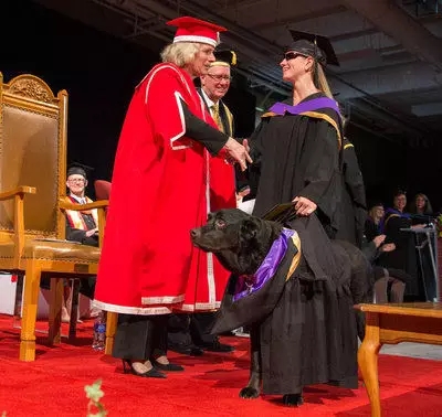 據(jù)悉,Tina目前已經(jīng)在加拿大卡爾加里律師事務(wù)所找到工作,而導盲犬Cashmere也將繼續(xù)陪Tina,幫助她過好未來的人生。如此看來,導盲犬給失明人士送去了極大的關(guān)懷,理應獲得這樣一個榮譽學位,你們覺著呢?