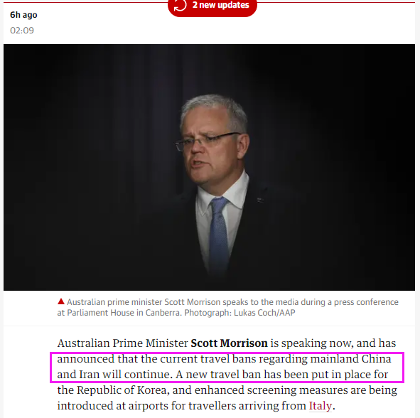 隨著數(shù)據(jù)上漲,澳大利亞目前也對伊朗、韓國實施了旅行禁令。