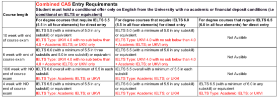 舉例說(shuō)明:如果學(xué)生是想用普通A類雅思+UKVI雅思來(lái)申請(qǐng)語(yǔ)言課,需提供UKVI 總分4.0(各單項(xiàng)不低于4.0+)+普通A類雅思5.5(單項(xiàng)不低于5)則符合申請(qǐng)10周語(yǔ)言的要求,以此類推。