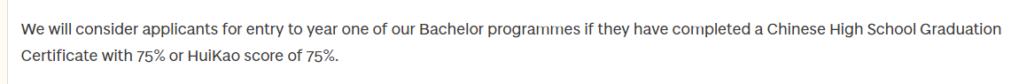 接受北京、上海和廣東省的高考生申請,高考總分(百分比換算)需達到80%或以上。