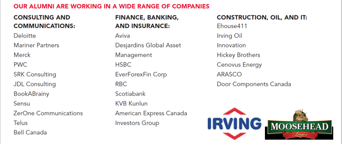 UNB的MBA項(xiàng)目因?yàn)橛?個(gè)月的實(shí)習(xí),并與當(dāng)?shù)乇姸啻笮偷倪B鎖集團(tuán)有良好的合作關(guān)系,就讀MBA的學(xué)生中,30%在畢業(yè)前就已經(jīng)獲得工作offer, 剩余70%的學(xué)生在畢業(yè)半年內(nèi)也基本都落實(shí)了工作,就業(yè)率達(dá)到了近100%。所以,學(xué)生可以完全無(wú)后顧之憂,順利實(shí)現(xiàn)讀書-就業(yè)-移民的“加國(guó)夢(mèng)”。