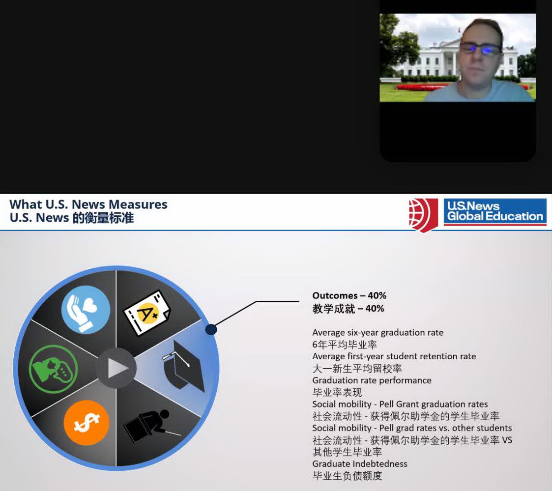 美國(guó)分會(huì)場(chǎng)我們特別邀請(qǐng)到了來(lái)自U.S.News Global Education的官方負(fù)責(zé)人,為留學(xué)生們權(quán)威解讀U.S.News排名以及如何選擇更好、更適合自己的學(xué)校。在線的同學(xué)們完全不用擔(dān)心語(yǔ)言聽(tīng)不懂,因?yàn)槊绹?guó)老師講的中國(guó)普通話非常標(biāo)準(zhǔn)!作為一枚來(lái)自南方的小編也是自愧不如、藍(lán)瘦香菇…