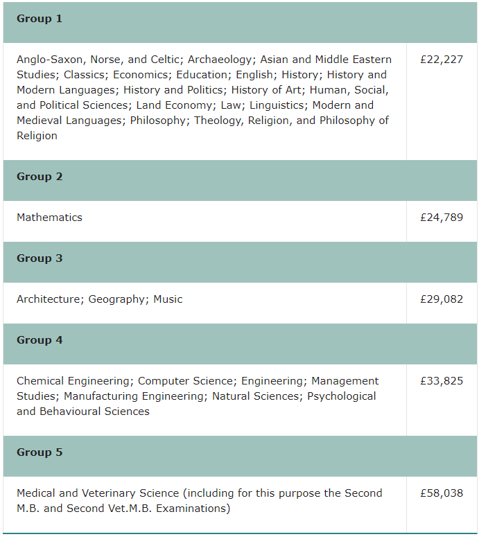 比如,材料科學(xué)每年學(xué)費(fèi)£37,510,PPE學(xué)費(fèi)£28,370,數(shù)學(xué)£31,230,醫(yī)學(xué)Pre-clinical £35,380,Clinical £46,730。