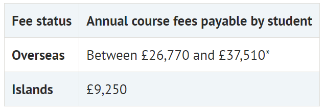海外學(xué)生本科學(xué)費(fèi)£26,770 - £37,510,尤其是臨床醫(yī)學(xué)的費(fèi)用更高,還需額外支付學(xué)院費(fèi)。