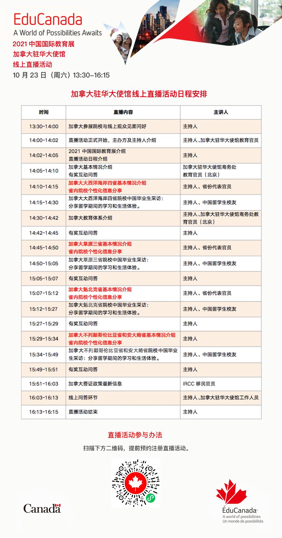 加拿大留學直播預告10月23日加拿大駐華大使館將舉辦線上直播活動,精彩不容錯過!