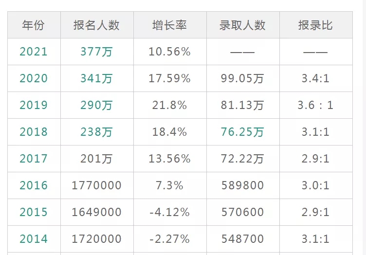 歷年考研報(bào)考人數(shù)統(tǒng)計(jì)表