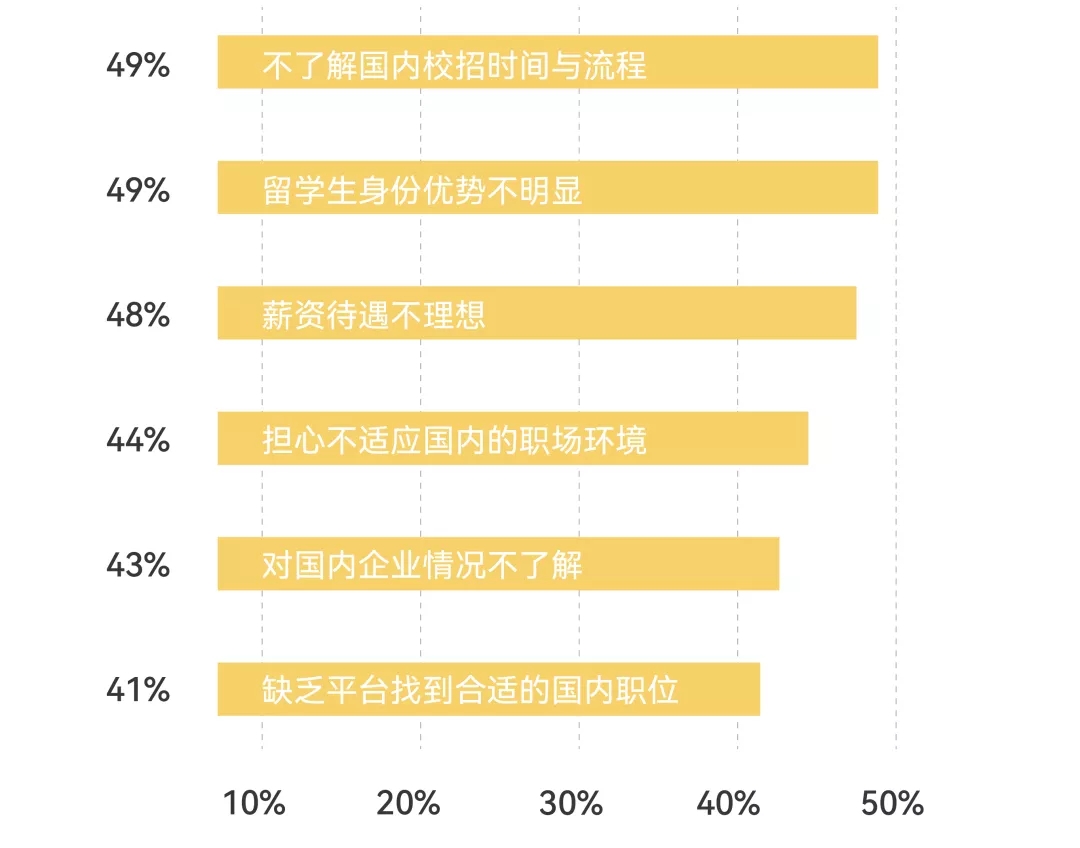 LinkedIn的數(shù)據(jù)調(diào)查顯示,近一半的海歸工作不滿一年就(主動/被動)辭職了?;貒牧魧W生們會自嘲“海廢”、說自己“躺平”,也是因為他們面臨著很多求職困境。