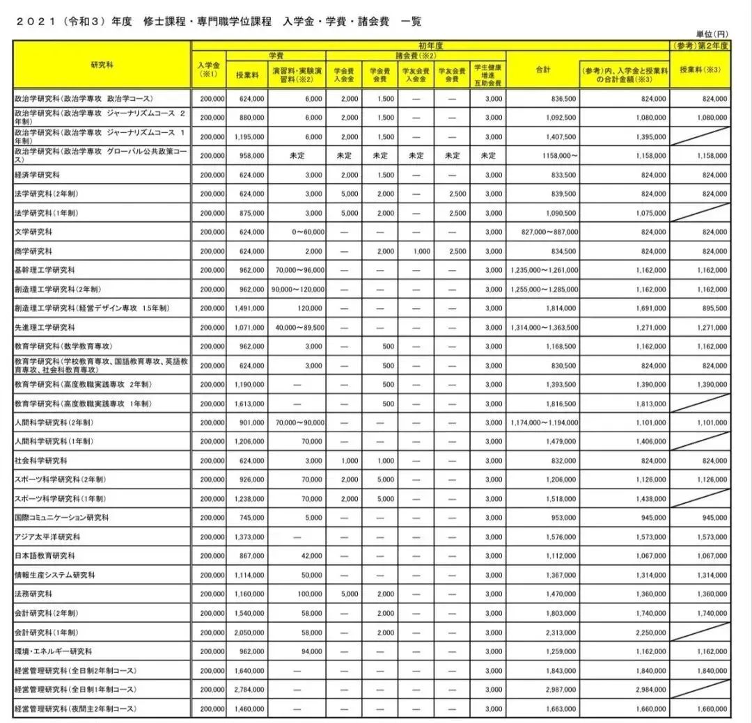日本私立大學(xué)、大學(xué)院學(xué)費
