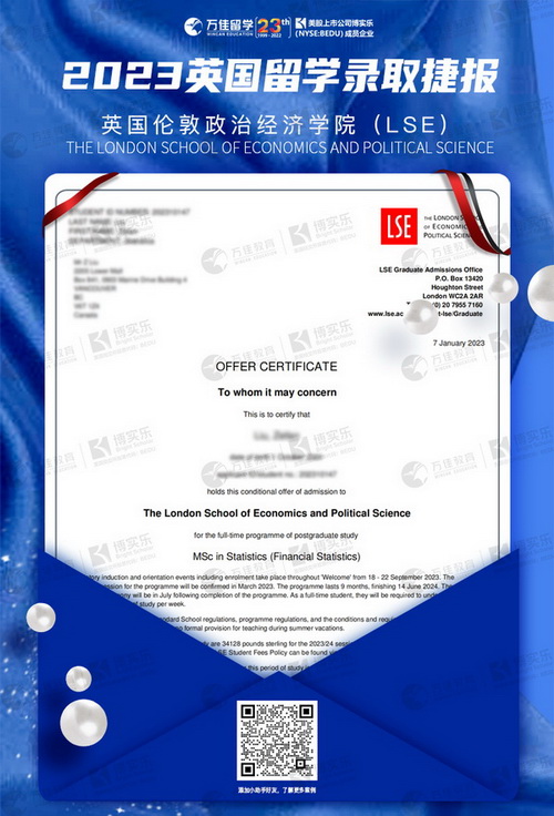 能夠拿到LSE的錄取我是非常滿意的、也是我的夢校,我希望有更多的學(xué)子了解萬佳留學(xué),選擇萬佳就是選擇放心。