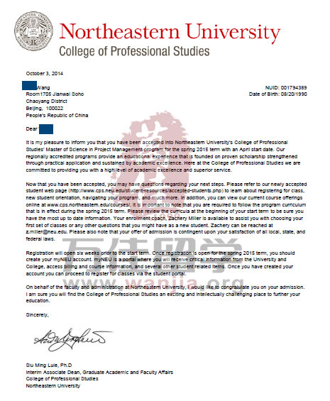申請時,學(xué)生沒有托福成績,而且也不愿參加考試。而美國大學(xué)要求至少在美國讀過三年正課才可以豁免托福。學(xué)生讀正課的時間是兩年半,只差半年。我們沒有放棄希望,決定嘗試與學(xué)校溝通。經(jīng)過反復(fù)的argue,學(xué)校最終同意豁免王同學(xué)的托福成績。2014年11月,王同學(xué)以無托福成績,GMAT成績低的背景,成功獲得東北大學(xué)CPS學(xué)院碩士項目管理專業(yè)的錄取。