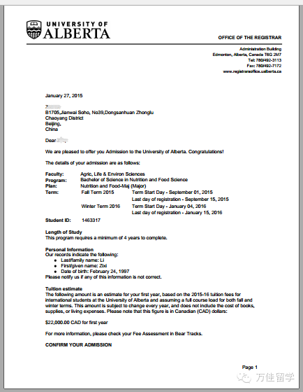 申請結(jié)果:喜獲Alberta農(nóng)業(yè)生命和環(huán)境科學(xué)專業(yè)6000加幣獎(jiǎng)學(xué)金和UBC食品科學(xué);